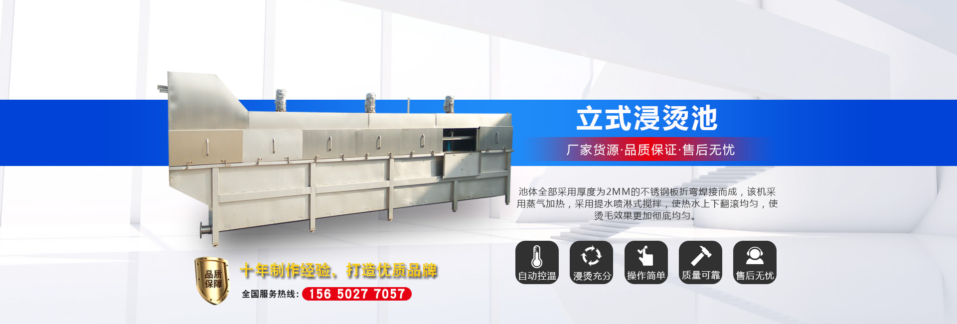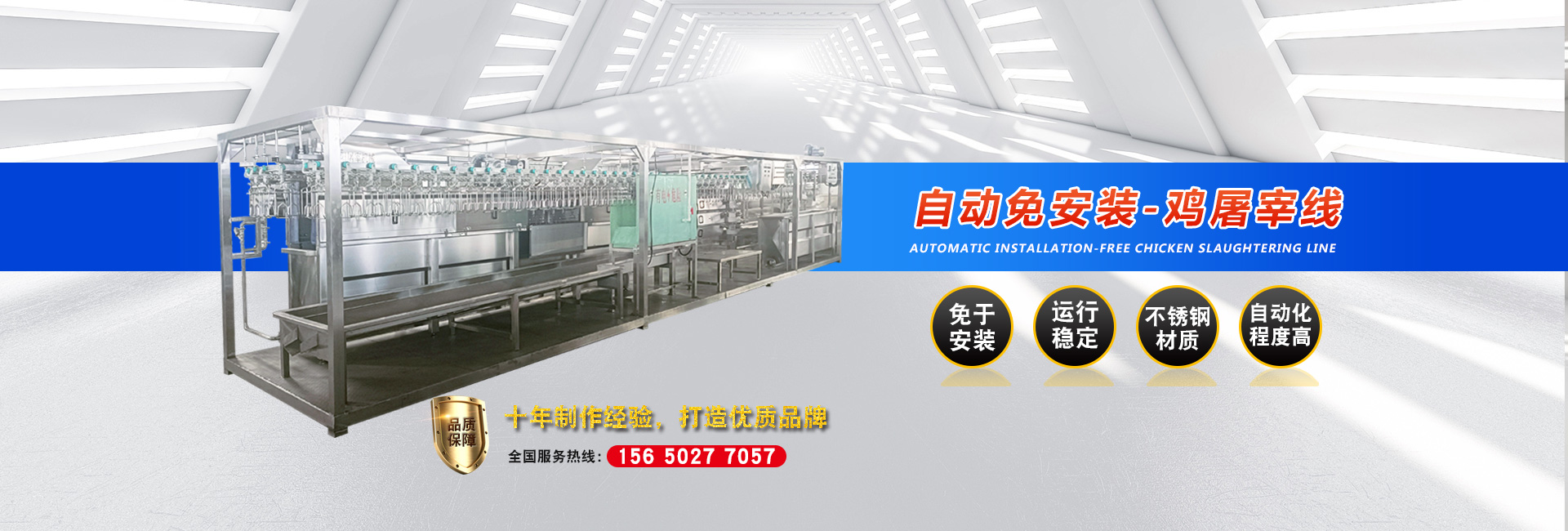 公司長(zhǎng)期與國(guó)內(nèi)外屠宰加工企業(yè)合作,走引進(jìn)——消化——?jiǎng)?chuàng)新和自主研發(fā)相結(jié)合的道路,在國(guó)內(nèi)外同類(lèi)產(chǎn)品的基礎(chǔ)上,不斷更新和改造。公司主要設(shè)備有:A字型立式脫毛機(jī)、臥式脫毛機(jī)、強(qiáng)力噴淋機(jī)、松毛機(jī)、浸燙池、螺旋預(yù)冷機(jī)、禽籠清洗機(jī)、電暈機(jī)、兔扯皮機(jī)、兔割前爪/后爪機(jī)、剝胗機(jī)、自動(dòng)洗鉤機(jī)、螺旋燙爪機(jī)、雞爪脫皮機(jī)、分割輸送帶等屠宰用設(shè)備。其中,公司獨(dú)力發(fā)明生產(chǎn)設(shè)計(jì)的“電動(dòng)調(diào)節(jié)脫毛機(jī)”及“自動(dòng)控水控溫浸燙池”順利通過(guò)知識(shí)產(chǎn)權(quán)局的實(shí)質(zhì)性審查。公司所生產(chǎn)的設(shè)備 可與國(guó)外同類(lèi)產(chǎn)品配套使用,設(shè)備遠(yuǎn)銷(xiāo)阿爾及利亞、澳大利亞等中東、非州等并建立了長(zhǎng)期穩(wěn)定的合作關(guān)系。